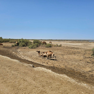 Cestou podél mokřadů vidíme rodinku kočkodanů, kteří se však neradi fotí a rychle mizí kdesi v houští, podobně jako prasata savanová. Samozřejmě narážíme na všudypřítomné kozy, osly, krávy a tu a tam i divoké velbloudy. Jelikož nejsme ornitologové, z ptáků poznáme jen pelikány, nicméně druhů jsme viděli nespočet. Během cesty projíždíme rybářskými vesničkami, jinak téměř nepotkáváme živáčka. Doufáme proto, že na hranicích to bude klidné – kdo by se sem takovou cestou vůbec odvážil? Na konci parku nás ještě zastavuje hlídka, která si účtuje poplatek 10 eur na osobu za průjezd. Jestli je to oficiální, netušíme, ale hádat se s vojákem se samopalem na krku nemá smysl. Doklad nám nevystavil, takže peníze nejspíš skončily v jeho kapse.